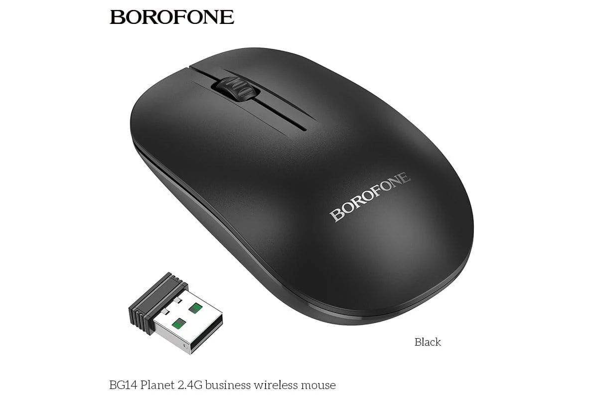 The Borofone BG14 Wireless Mouse offers reliable performance and comfort for everyday computing. Using stable 2.4 GHz wireless technology with a USB receiver, it provides smooth tracking and responsive control without cables.